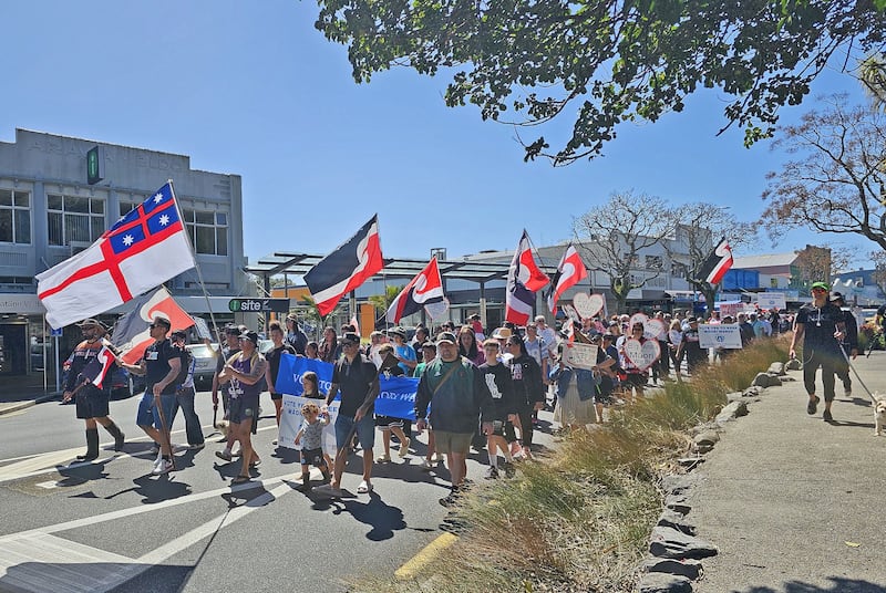 The Whakatāne event was part of a coordinated day of marches across New Zealand in areas where Māori wards are subject to a referendum as part of this year’s local elections.