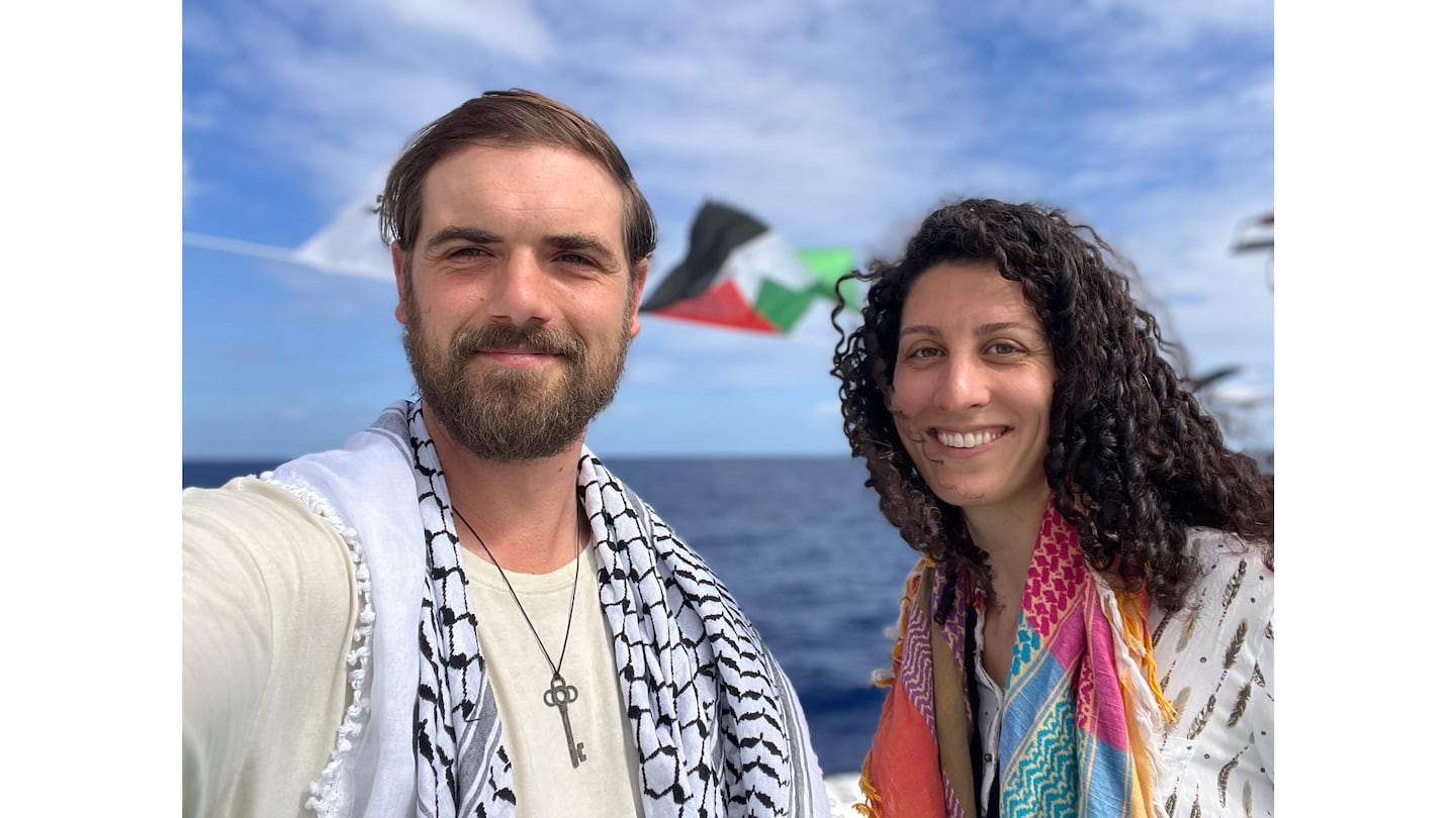 Young couple Will Alexander and Ava Mulla are aboard the Freedom Flotilla ship Conscience, sailing to Gaza with humanitarian aid.