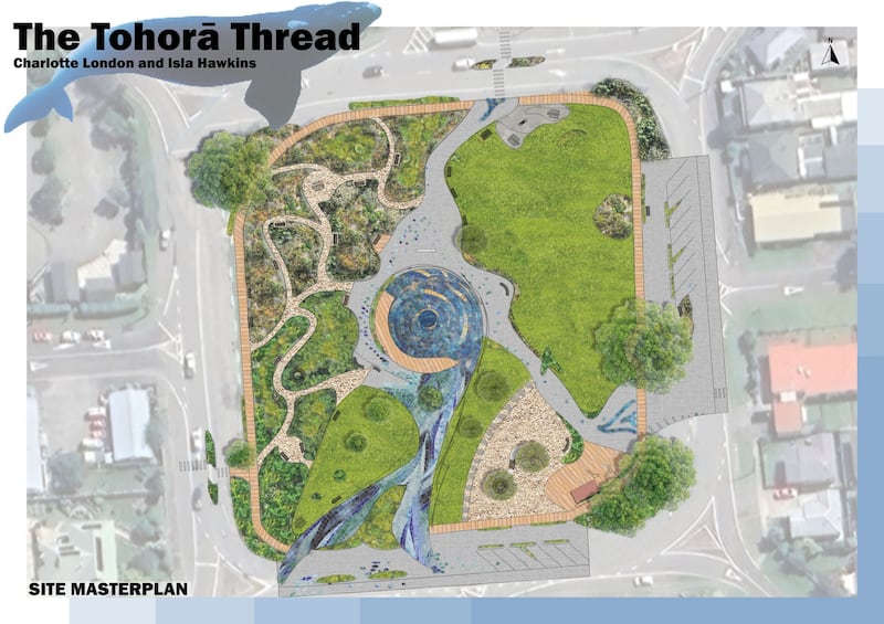 Samuel Fauth and Billy Lamont said the main path of their design, Te Haerenga o te Taniwha, would symbolise the taniwha’s journey to the ocean, the path would be surrounded by mounds, showing how the taniwha moved the earth around it.
