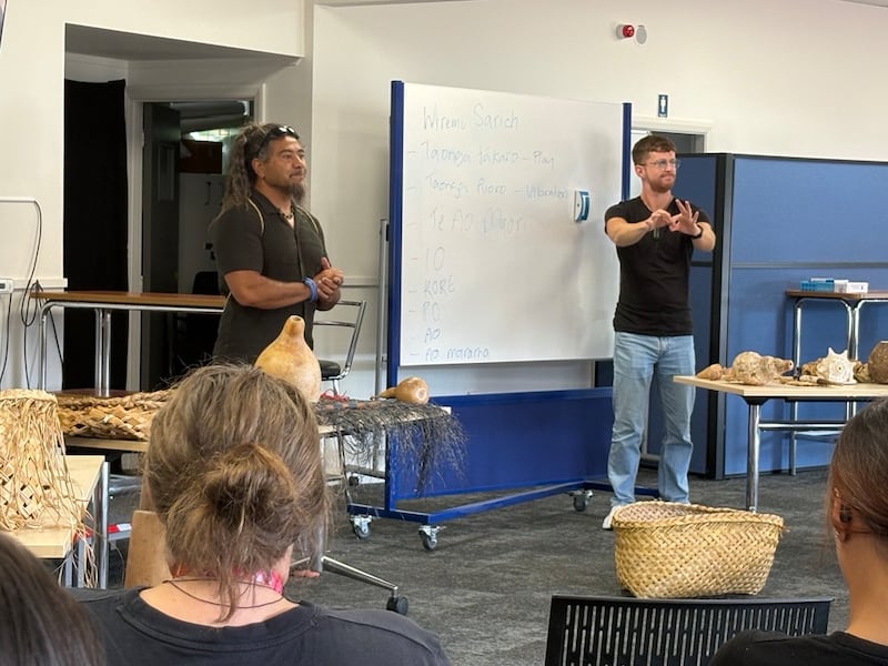 Kaiako Wiremu Sarich calls a triple barrier that to fully participate in many Māori spaces, you often need to navigate three languages: English, Te Reo Māori, and New Zealand Sign Language (NZSL).